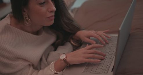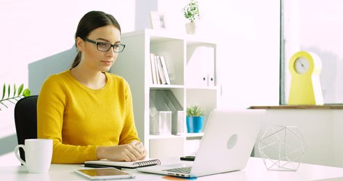 女生在家办公